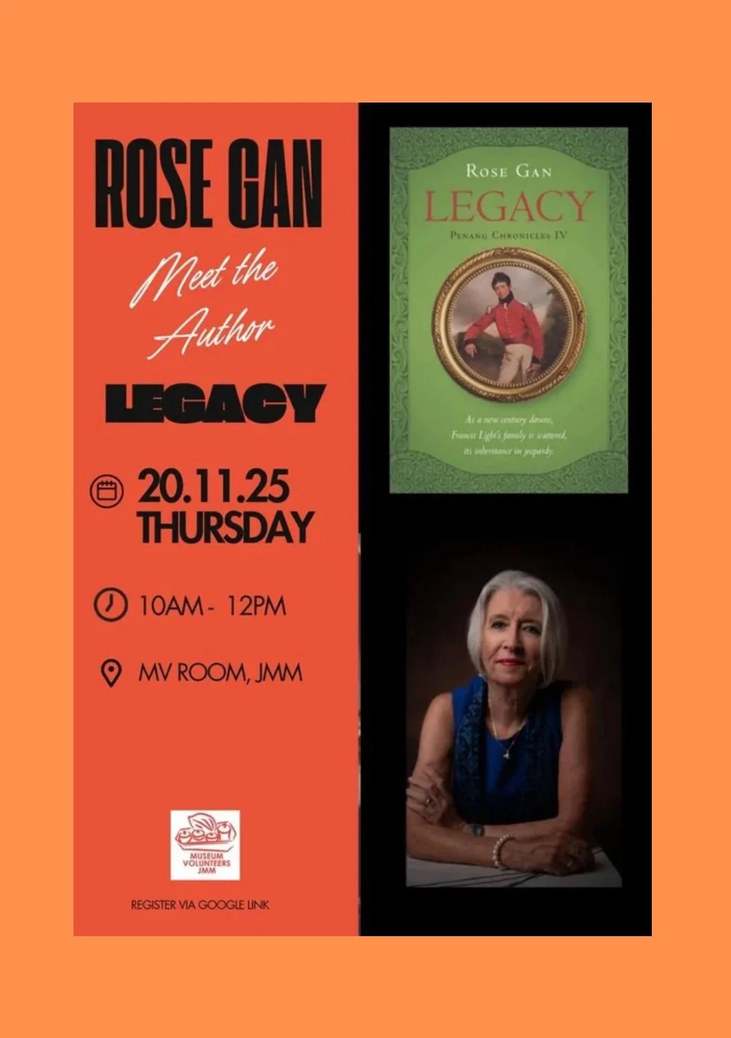 British by birth, Rose Gan has been based in South East Asia for many years. Once a teacher of History and Latin, then a docent and an editor, Rose is now a successful POPULAR - The Star Readers’ Choice Award nominated author for her celebrated ‘Penang Chronicles’ series.