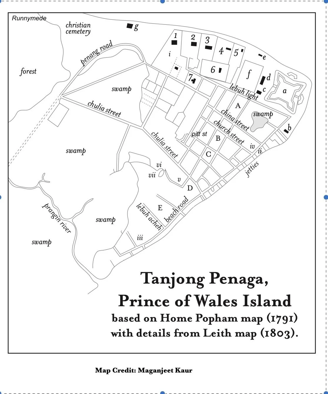 a. Fort Cornwallis b. Custom House c. Guardhouse
